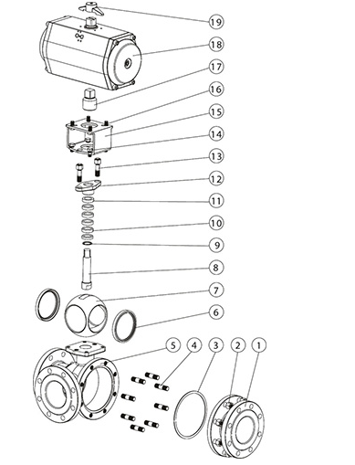 | 8 | 阀杆 | 1Gr13 | 1Gr18Ni9Ti | 1Cr18Ni12Mo2Ti | 18 | 气动装置 | 挤压铝合金 | ||